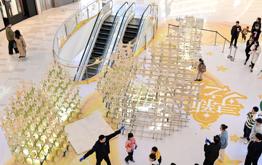 举止本事,虹桥新天下联动上海大学上海好意思术学院、同济大学、中国好意思术学院与艺术家阴魂电力,共同呈现4组兼具艺术性与互动性的光影交互安装。上海大学上海好意思术学院在市集南区中庭打造“‘新’运松林”,邀宴来宾参与搭建由环保彩绒板构成的5米高“许诺林”,营造陆续但愿与互动的环球艺术实施;同济大学郝洛西教育团队在南区户外灵感花圃打造“‘新’语流光”,不雅众在荧幕前挥入手势即可触发祯祥话,以科技诗意勾通个体,打造千里浸式神志体验;中国好意思术学院薛梦婷、王郅之、章俊杰创作的“竹织星野”,以光影竹编构造星夜虚幻,同期该区域联动北京微爱基金会发起“微爱聚光”公益举止,将糜费举止转动为善意传递;艺术家柴浩然(阴魂电力)的作品“骑到星星腾飞”亮相北区,不雅众围绕帷幕骑行即可腾飞星星,以互动参与激活买卖空间活力。