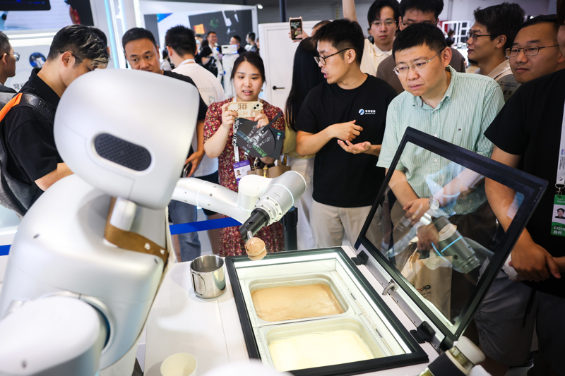 在2025年全国东谈主工智能大会上,非夕与其孵化企业穹彻智能一同参展,双臂力控平台AICO-2现场完成开柜、舀挖、清洗的全过程冰淇淋制作