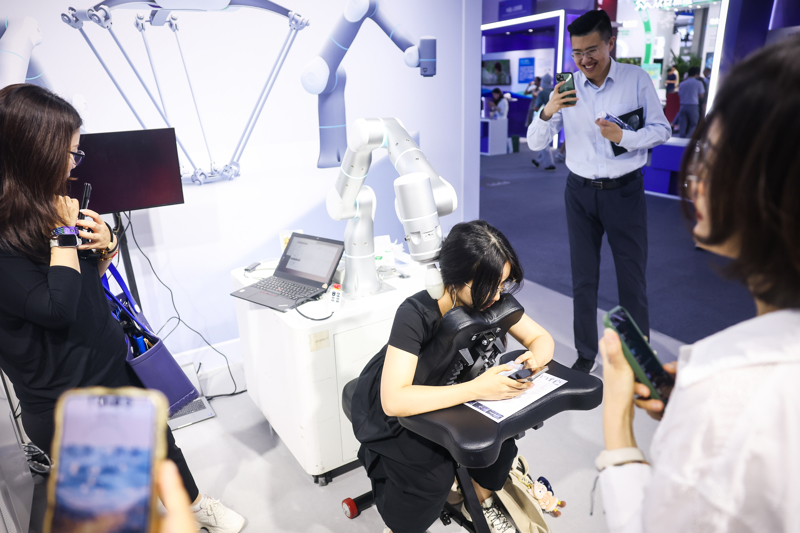 2025外滩大会上,非夕自适应机器东谈主化身推拿师。海沙尔摄