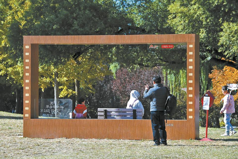 部分长椅旁设有不错互动的秋日主题邮筒,向阳公园、地坛公园和清河之洲三大中枢赏秋地还建树了大型电摄影框,将秋日好意思瞻念化作自然“摄影棚”。执政阳公园万东说念主广场,棕色的电摄影框立在“网红树”前的草坪上,相框中央摆放着一把木质长椅,一旁的红色邮筒与之呼应,眩惑不少新东说念主来此拍摄婚纱照。“正本仅仅假想拍公园外景,没念念到这个相框让相片有了电影海报的质感,太惊喜了!”一位新娘笑着说。