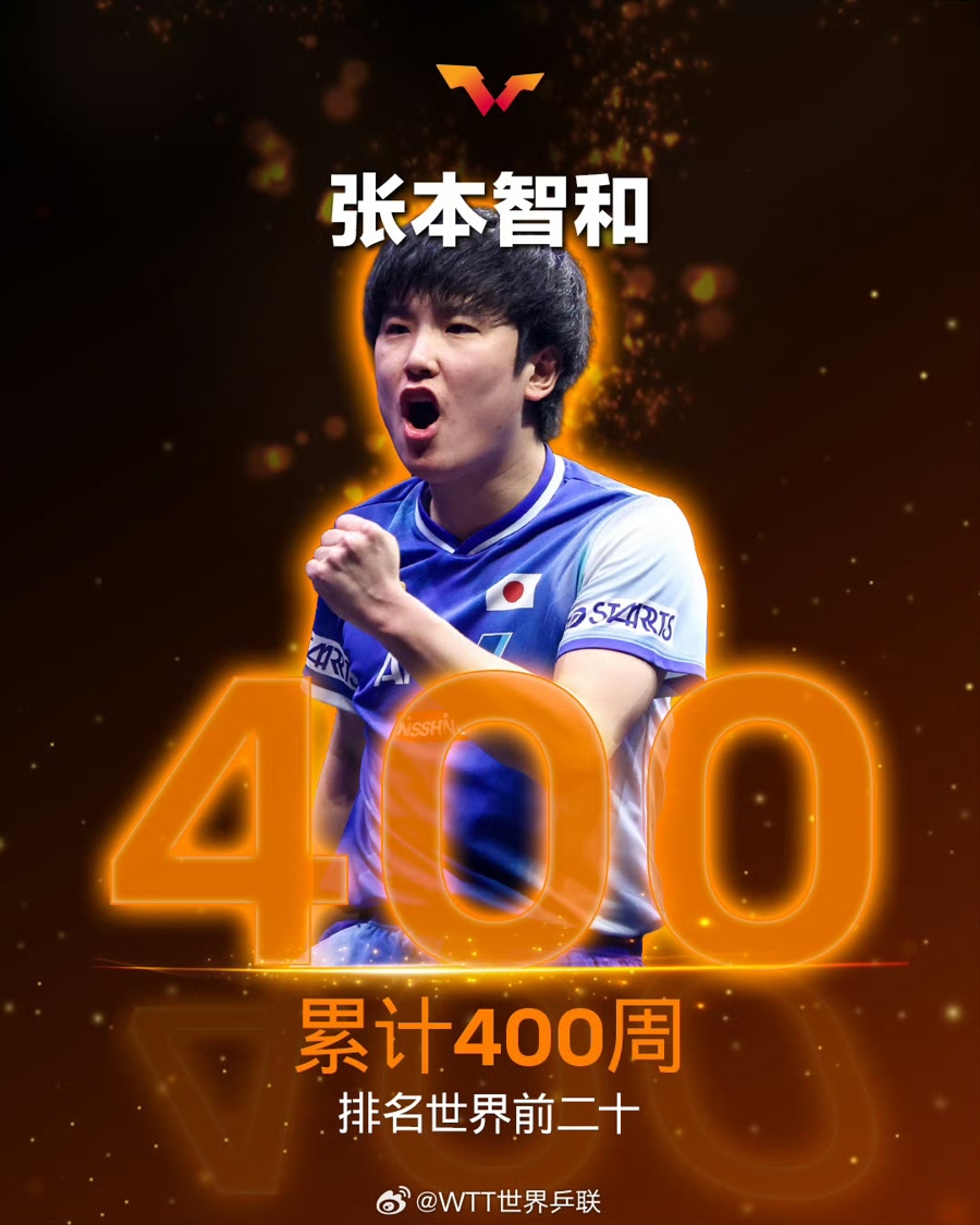 与孙颖莎一同刷新记载的还有日真名将张本智和,他的宇宙前二十累计周数打破400周。从初度亮相宇宙排行时的第836位,到如今成为稳居前二十位的顶尖高东谈主,张本智和已成长为宇宙乒坛最具着名度的选手之一。本赛季,他不绝强势发扬,先后斩获三座WTT系列赛冠军——WTT多哈球星挑战赛、WTT萨格勒布挑战赛冠军,更在原土作战的WTT横滨冠军赛中打败王楚钦,夺得男单冠军,三座冠军奖杯印证了其安然的竞技水准。