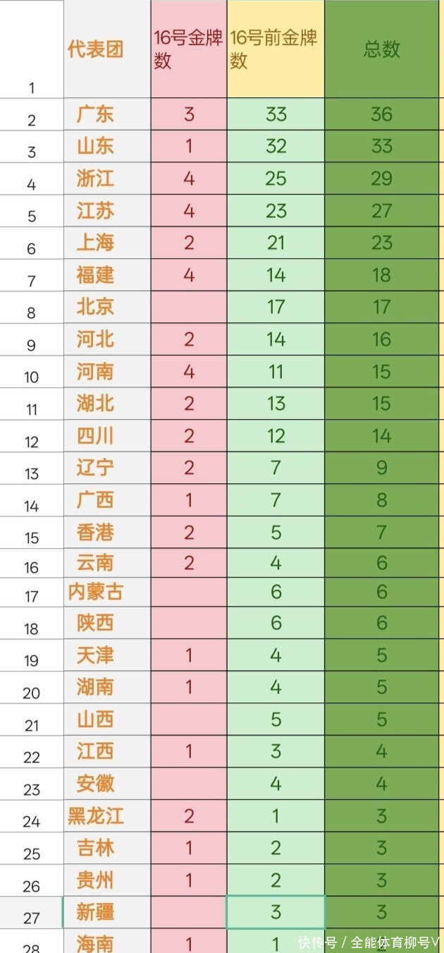 值得一提的是,这个比赛日赢得金牌最多的是浙江队、江苏队、福建队、河南队,他们各获4枚金牌。凭借一日4金,浙江队也以29枚金牌,高涨到金牌榜的第三位,广东、山东则以38枚金牌比肩第一。