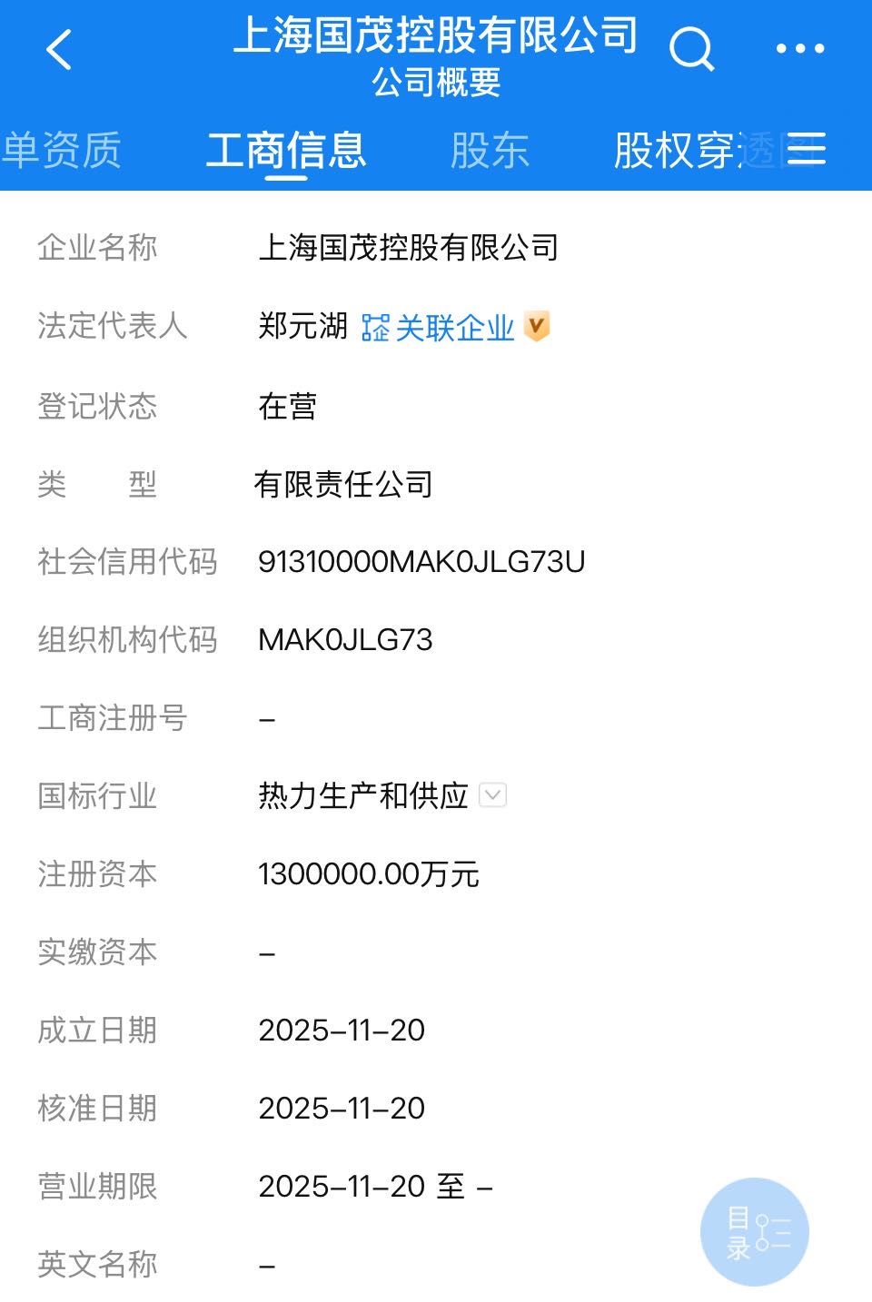 上证报中国证券网讯(记者 费天元)企业预警通讯息表示,11月20日,上海国茂控股有限公司的工商注册登记手续已完成,注册老本130亿元,行业分类为热力分娩和供应,谋略鸿沟包括口岸谋略、燃气谋略、生物资燃气分娩和供应、互联网信息劳动。