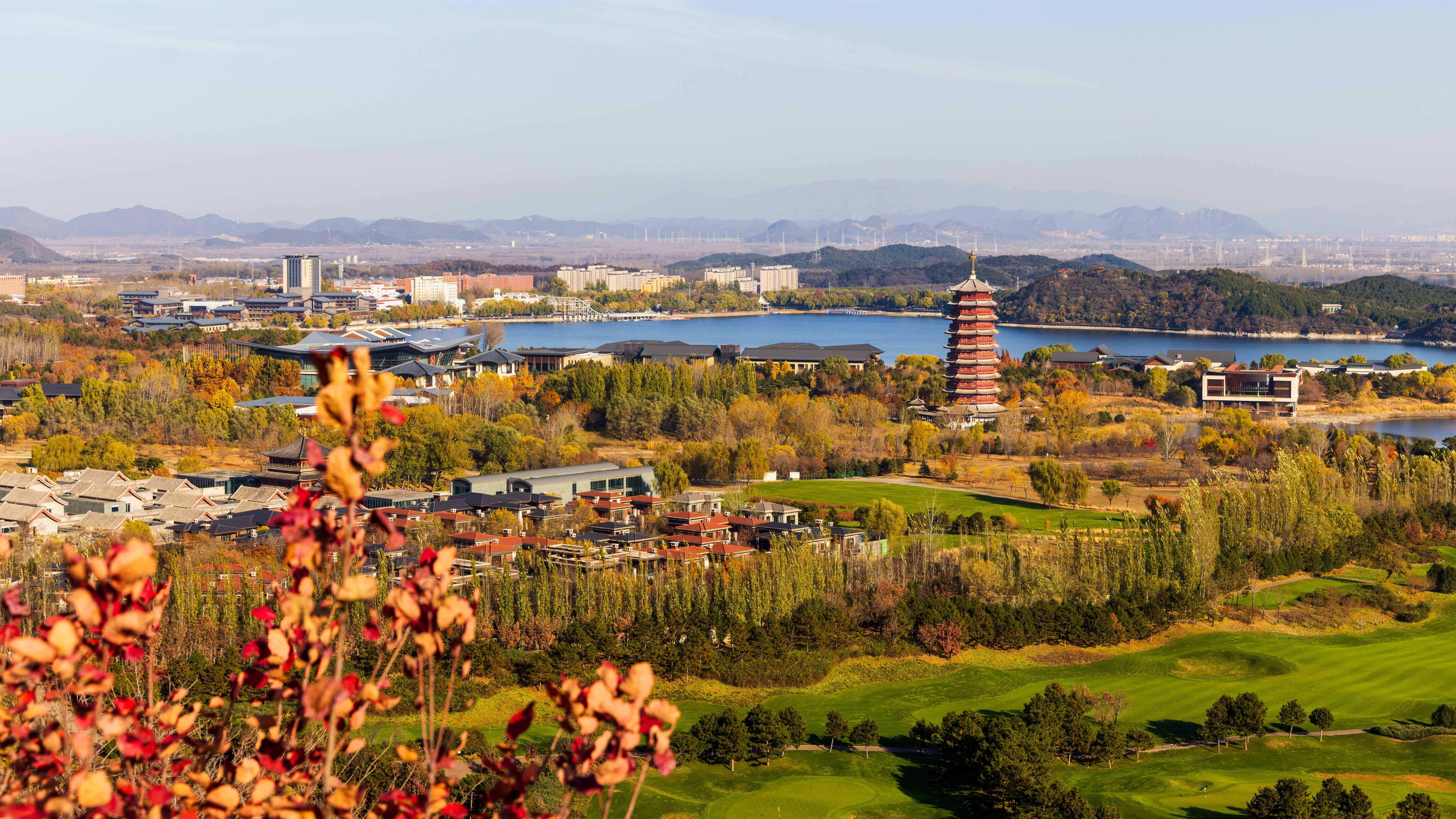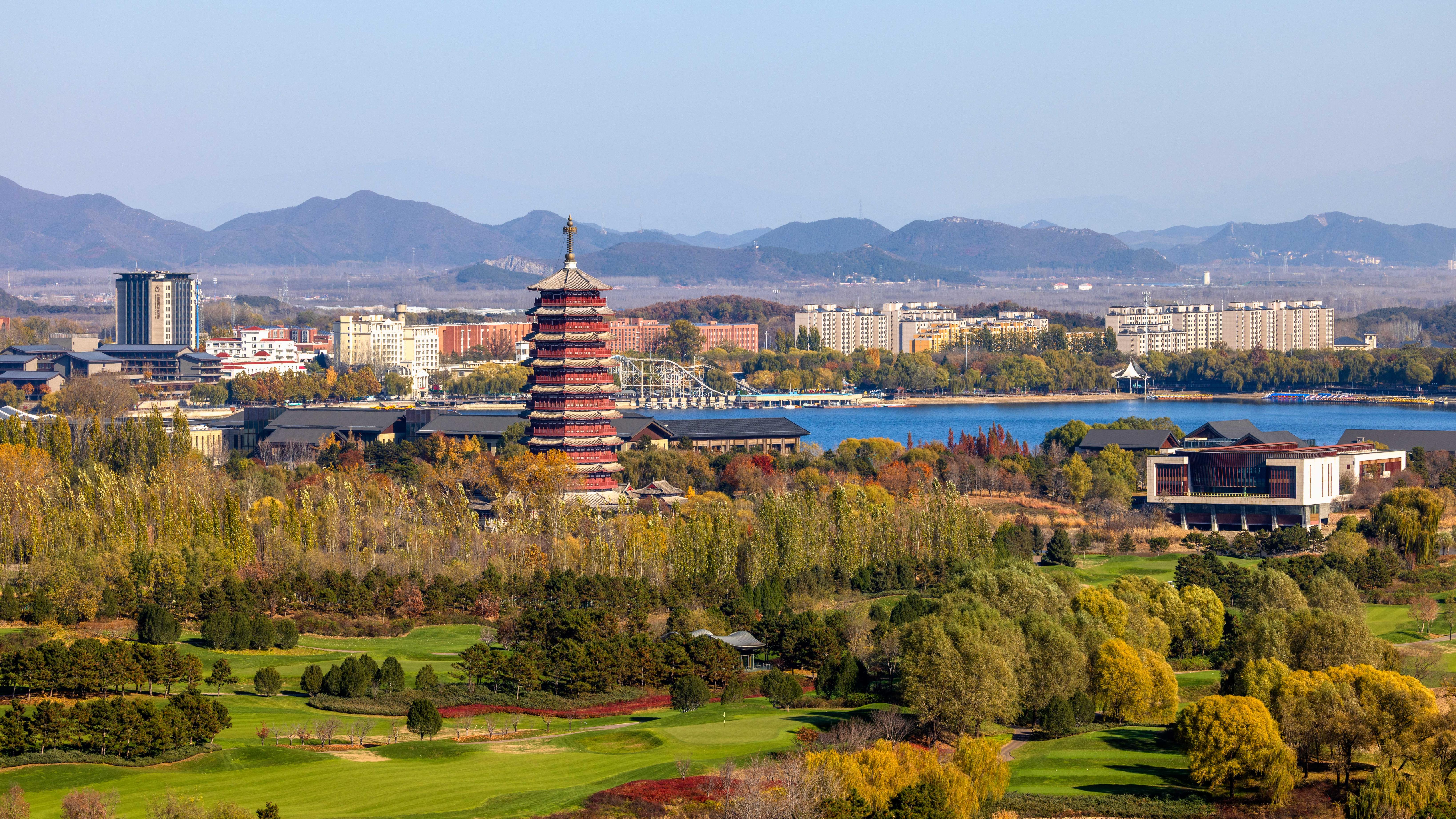 11月10日,雁栖湖第五步谈如油画,制高点处山光水色、古塔、货仓和洽,当然与东谈主文共绘视觉盛宴。
