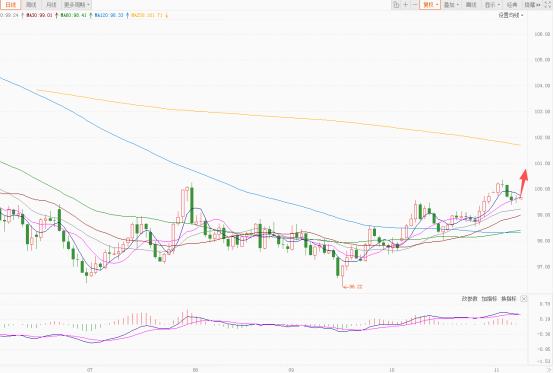 欧元兑好意思元价钱从前期1.0177的新低运转筑底反弹,沿途震憾高潮,现在欧元对好意思元举座全部运行在MA250日均线上方,呈昭彰的多头趋势。日内短线行情则提议看多震憾高潮的走势。